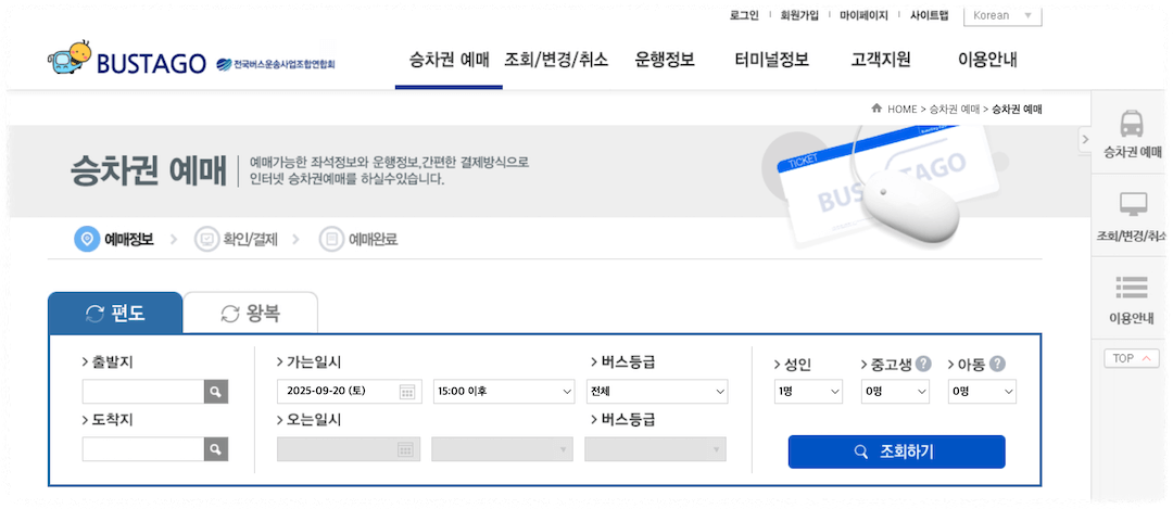 의정부시외버스터미널은 노선 성격에 따라 예매처가 달라질 수 있어, 먼저 코버스/버스타고에서 조회했을 때 어느 예매처로 연결되는지를 확인하는 방식이 안전합니다. 공통 흐름은 “조회 → 시간 선택 → 좌석 선택(가능 시) → 결제 → 예매내역 확인”이며, 예매내역에서 도착지 표기(터미널/정류장)·탑승 안내 문구를 끝까지 확인하는 것이 핵심입니다.